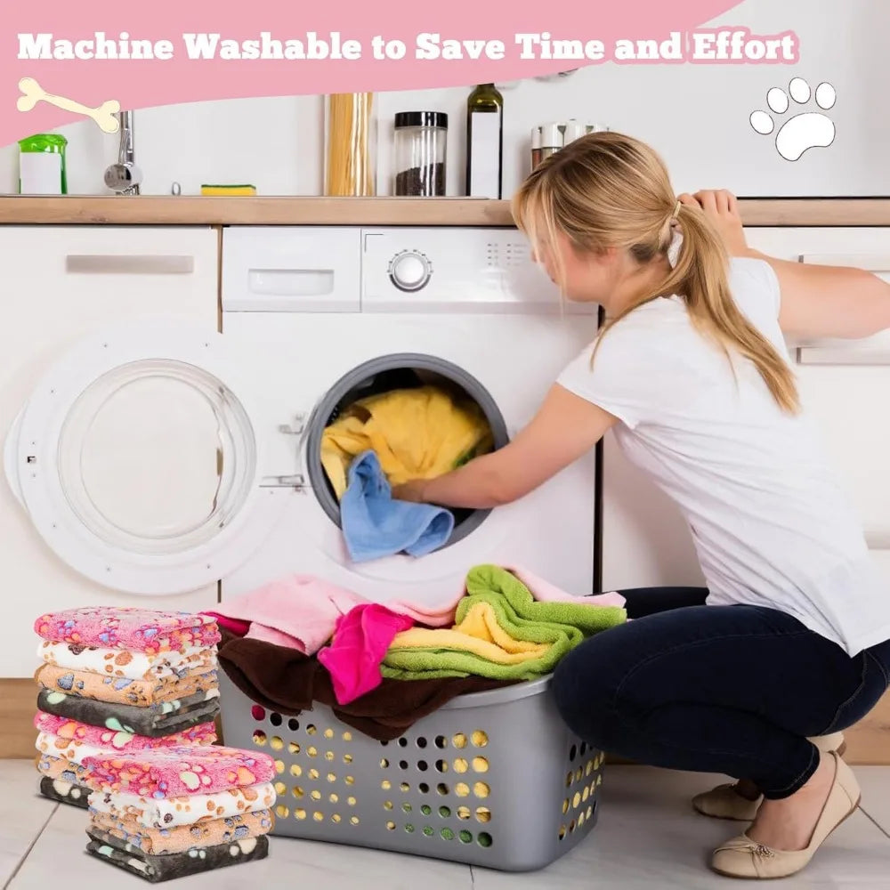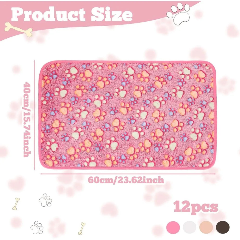 12 Pack Fleece Dog Blankets Paw Print Soft Washable