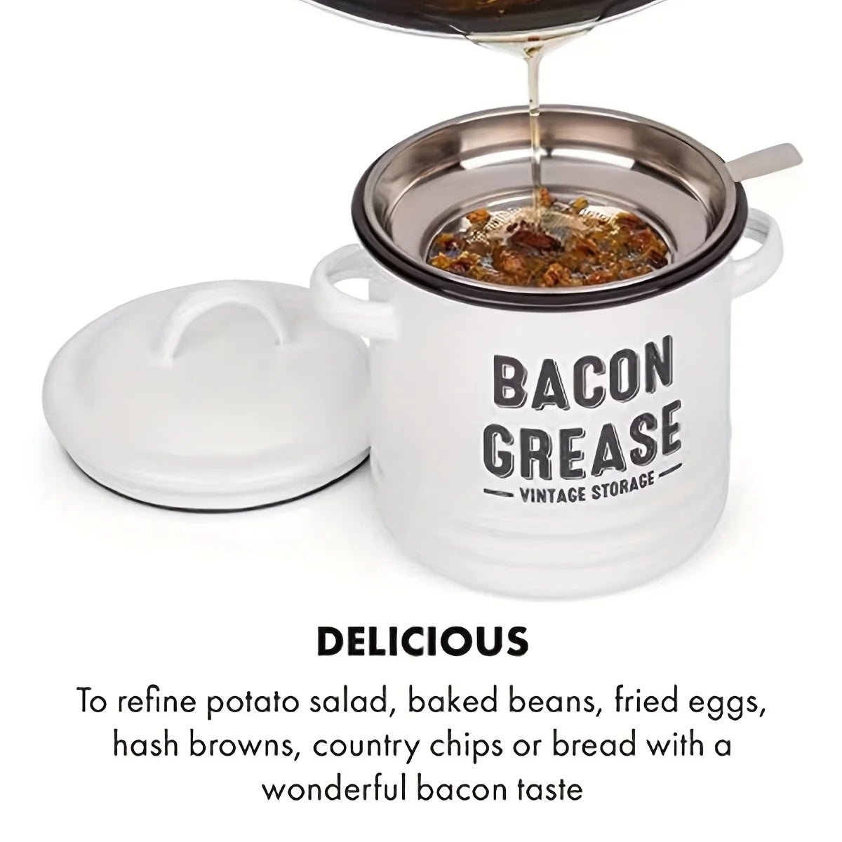 Keep your cooking oils neatly stored and ready at a moment's notice with this large-capacity enamel oil pot.