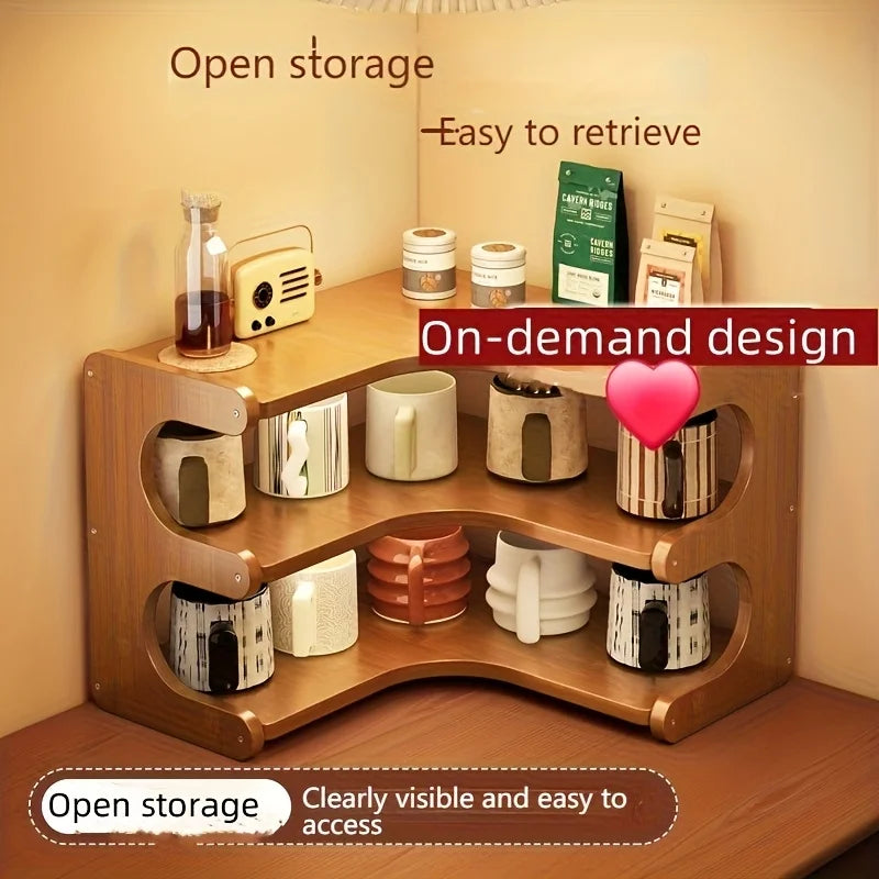 The Three-Tier Bamboo Corner Shelf Wall Mounted Organizer for Plants Books brings natural charm and compact organization to your space.
