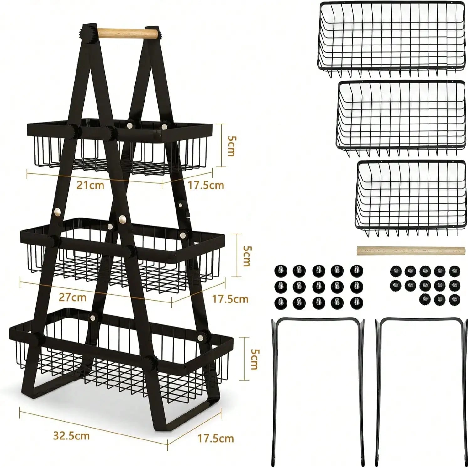 3-Tier Fruit Basket With Removable Shelf For Kitchen Storage