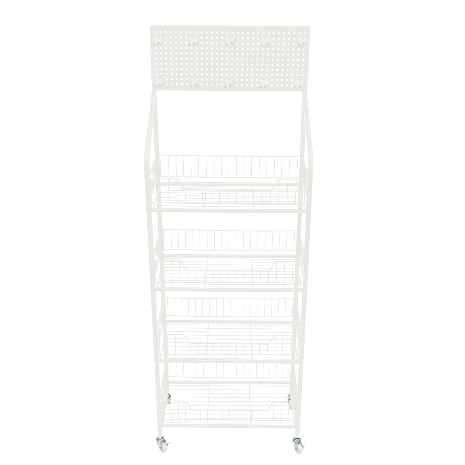 - Top hanging board accepts hooks for customizable displays; each tier has a guardrail to prevent items from sliding, plus 3.8-inch bottom clearance.