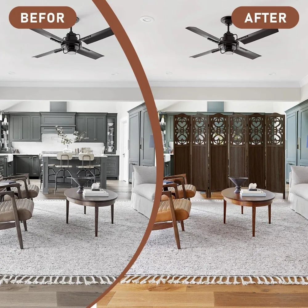 - Six-panel, rustic brown wood divider creates instant separation and a warm, natural focal point, helping you define living, work, and relaxation zones without building walls.