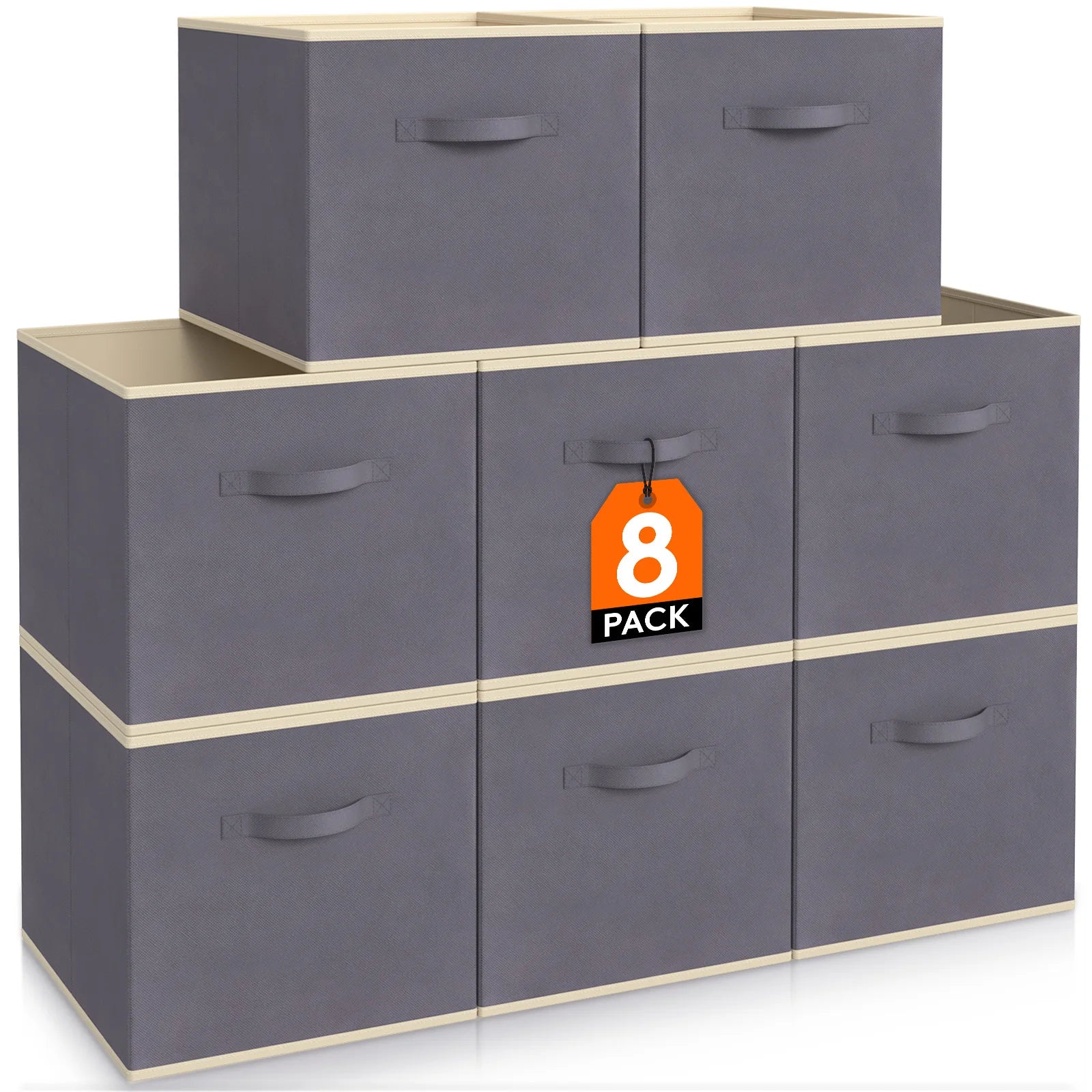 Foldable Fabric Cube Storage Bins With Handles For Shelves