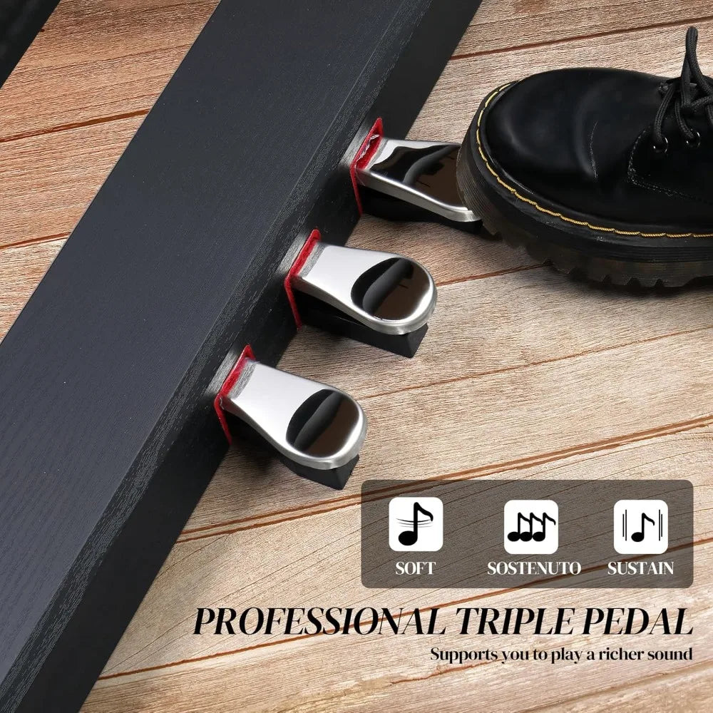 - Premium playing experience: triple pedals (sustain, sostenuto, soft) and a wood-grain finish elevate your home studio; clamshell design protects the keys when idle.