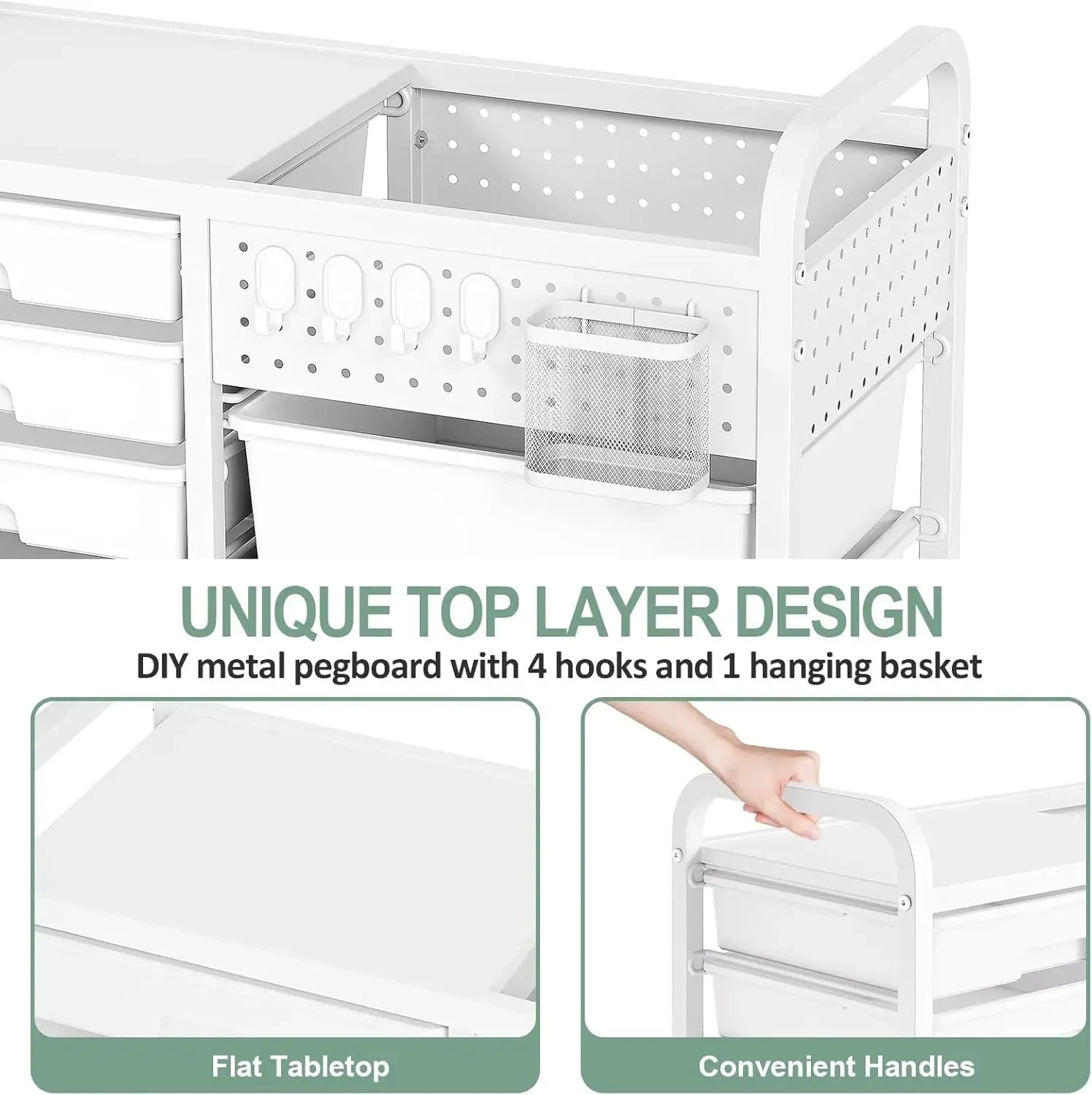 14 Drawer Rolling Cart With Tabletop And DIY Pegboard Office