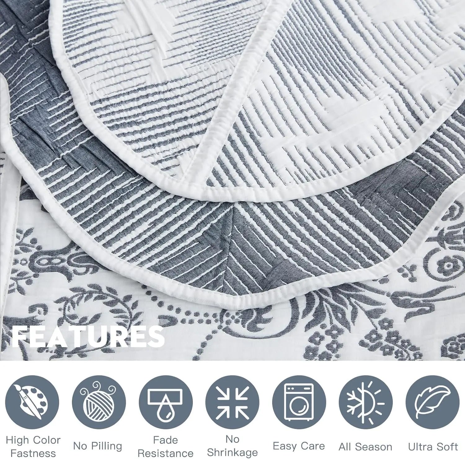 XMSJ Jacquard Matelasse Damask Bedspread Set Lightweight