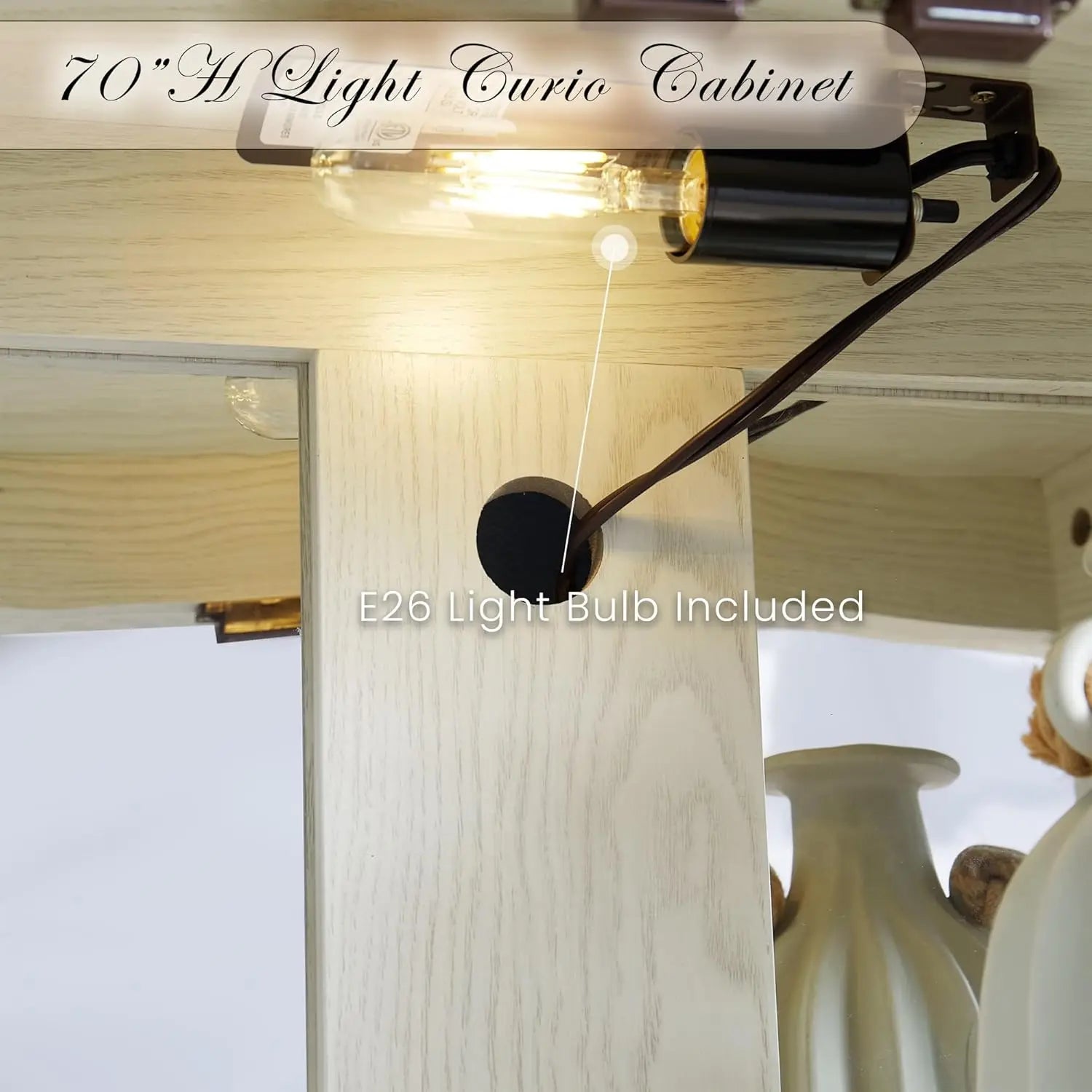- Built-in lighting with a bulb included ensures your items shine even in low light, so every detail is showcased.