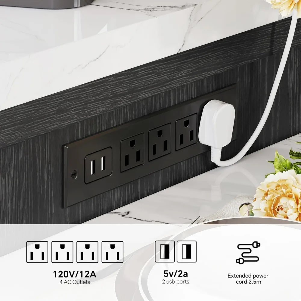 - Stay powered and organized with 4 outlets, 2 USB ports, and a 2.5-meter cord, plus a built-in wine glass rack for your elegant storage.