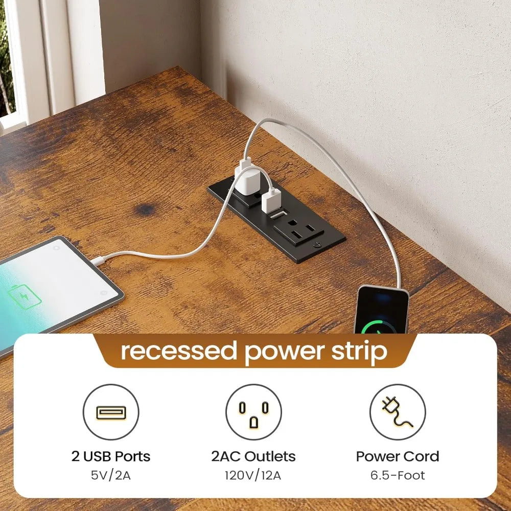 Maximize your workspace with the Angduo L Shaped Desk—sleek, versatile, and designed to boost productivity with smart storage, a built-in power outlet, and a polished wood finish.