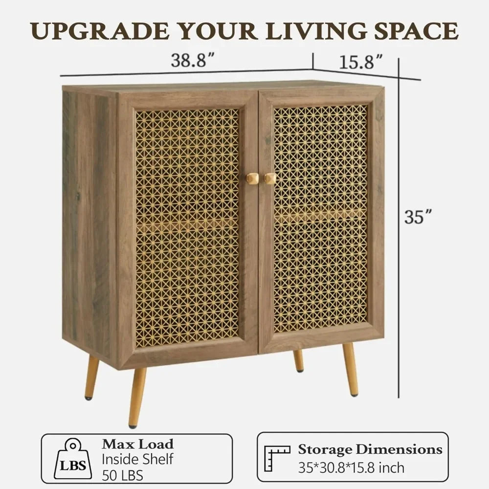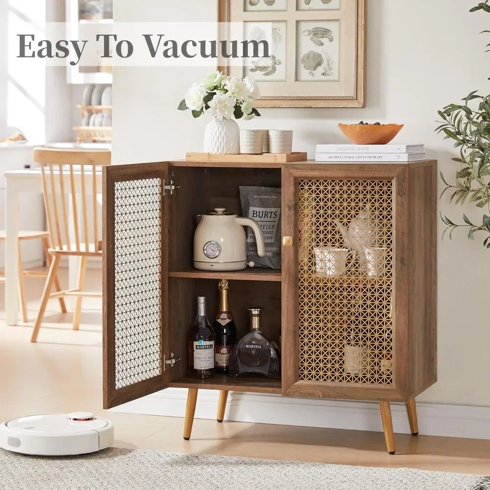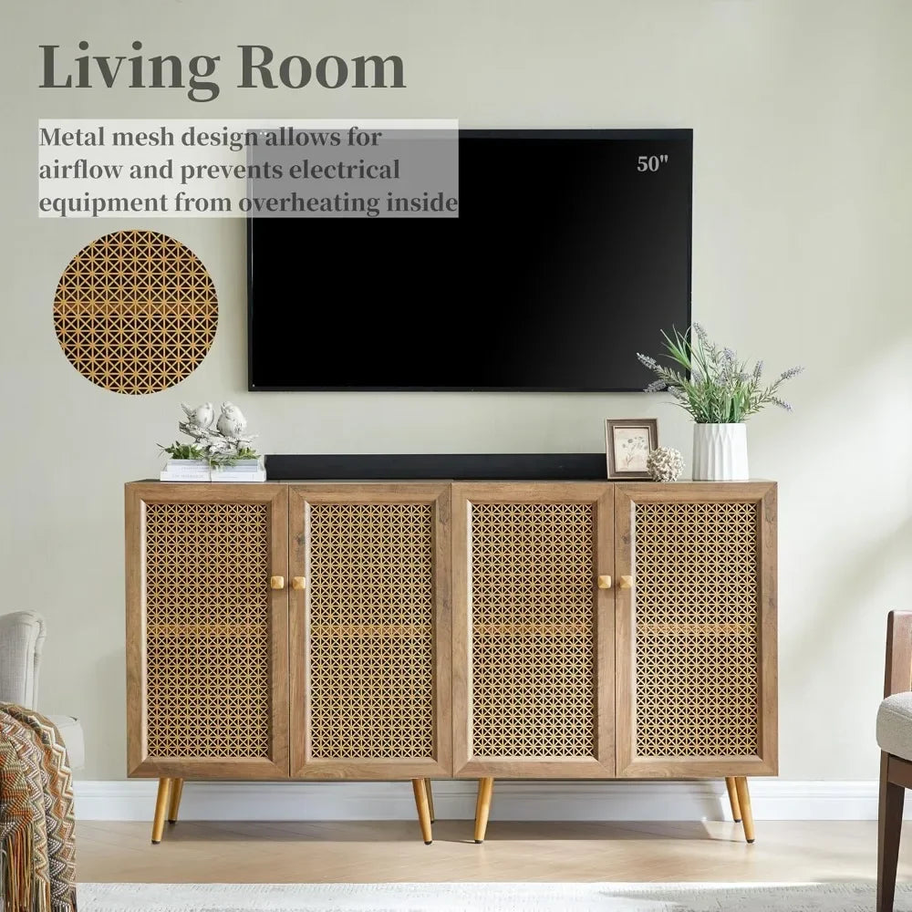 Multifunctional Storage Sideboard With Metal Mesh Doors For Living Dining