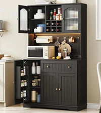 ONBRILL Pantry Cabinet With LED Light And Outlet Kitchen Storage