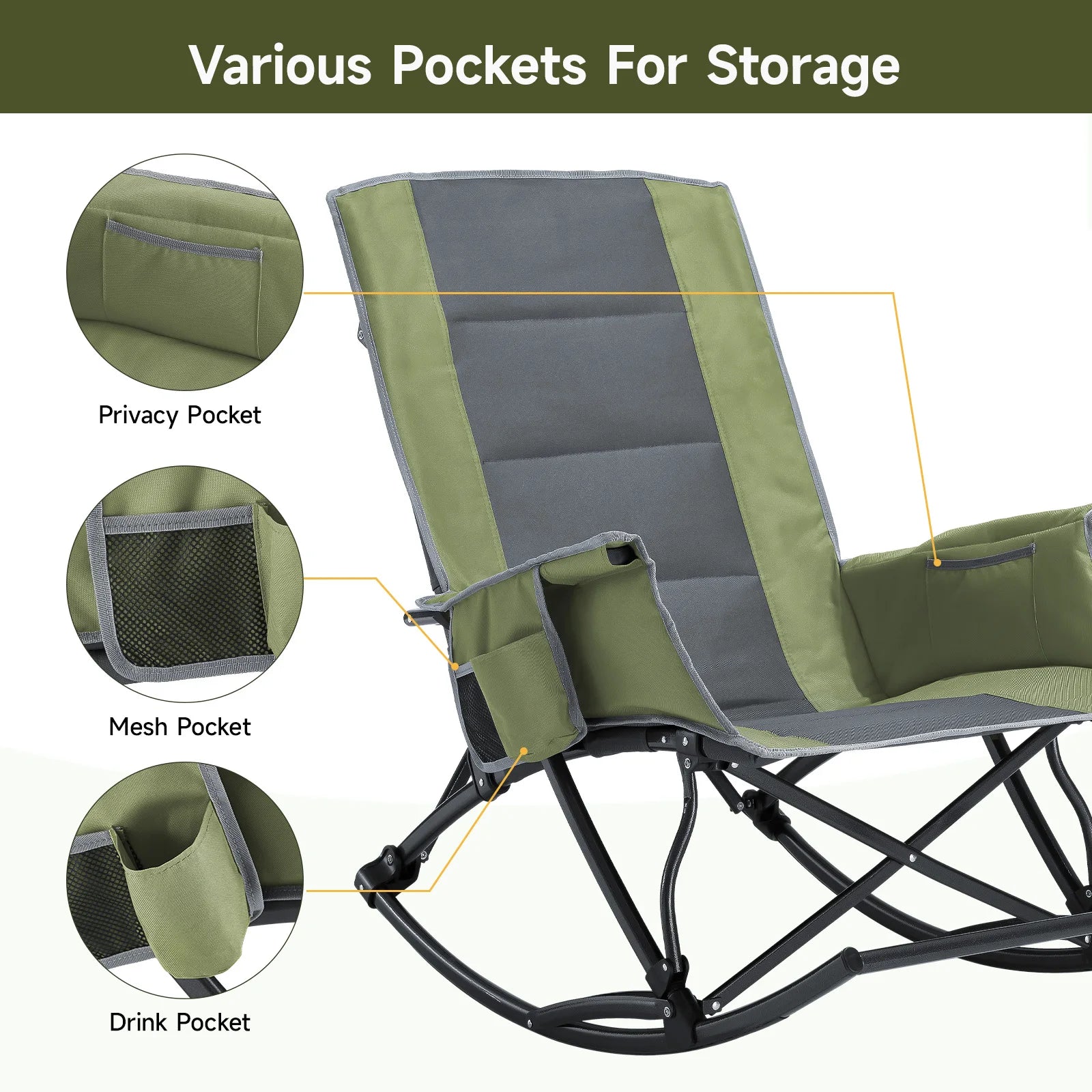 Rocking Camping Chair For Adults With Foot Rest Foldable