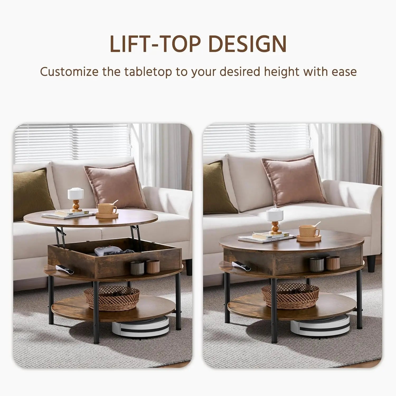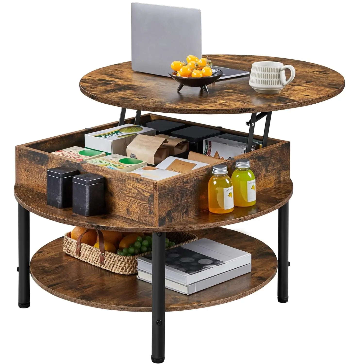 Round Lift Top Coffee Table With Hidden Compartment And Storage blends sleek form with practical storage, helping you reclaim space and keep clutter under control.