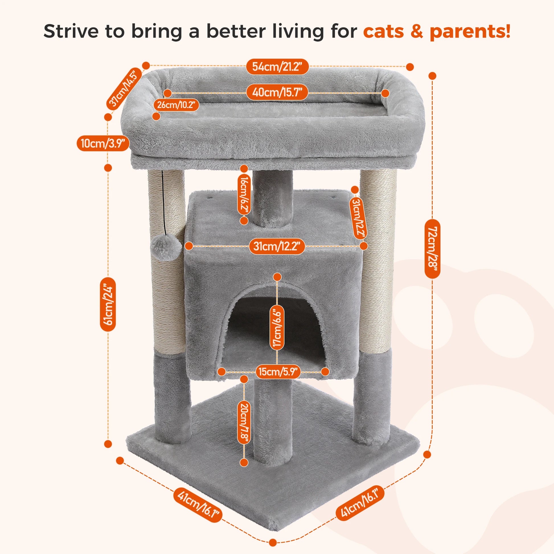 PAWZ Road Small Cat Tree With Sisal Scratching Posts And Soft Top Perch