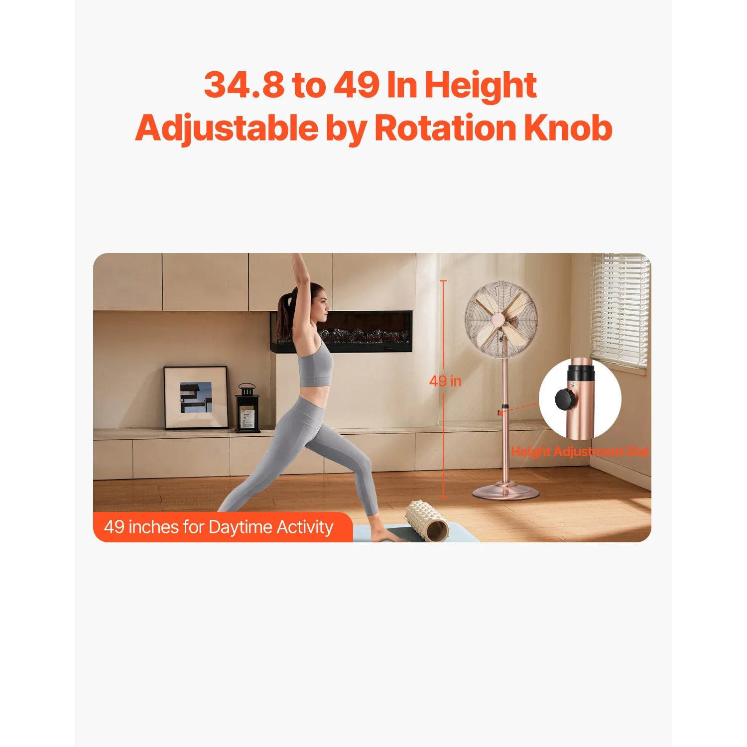 - Flexible positioning lets you tailor airflow to you: height adjustable from 34.8–49 inches, 20° vertical tilt, and 75° oscillation to cool every corner of the room.