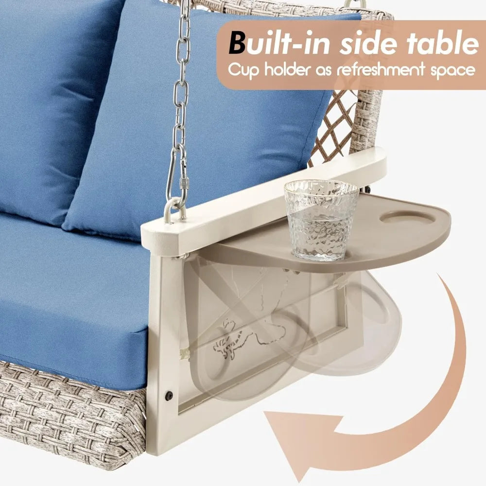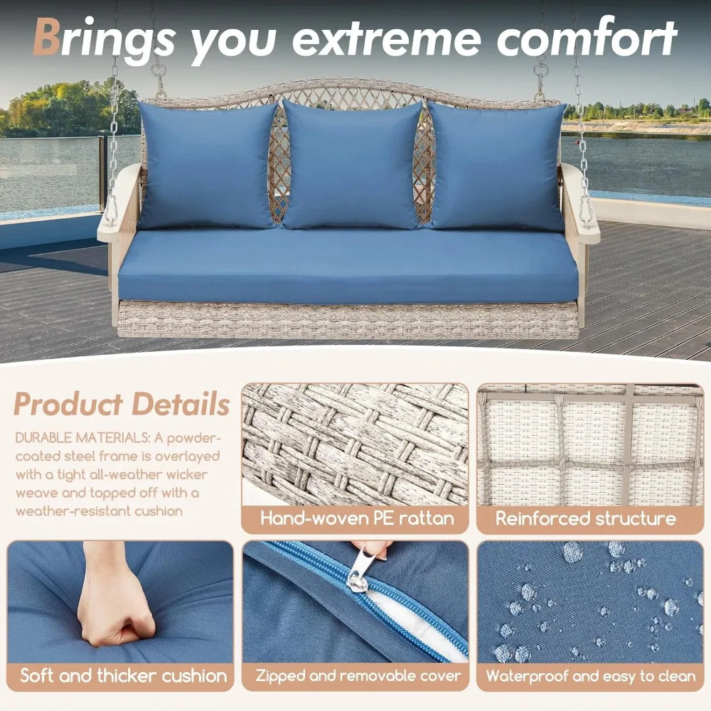 RBXC Upgraded Wicker Hanging Porch Swing 900Lbs 3Seat Outdoor Patio
