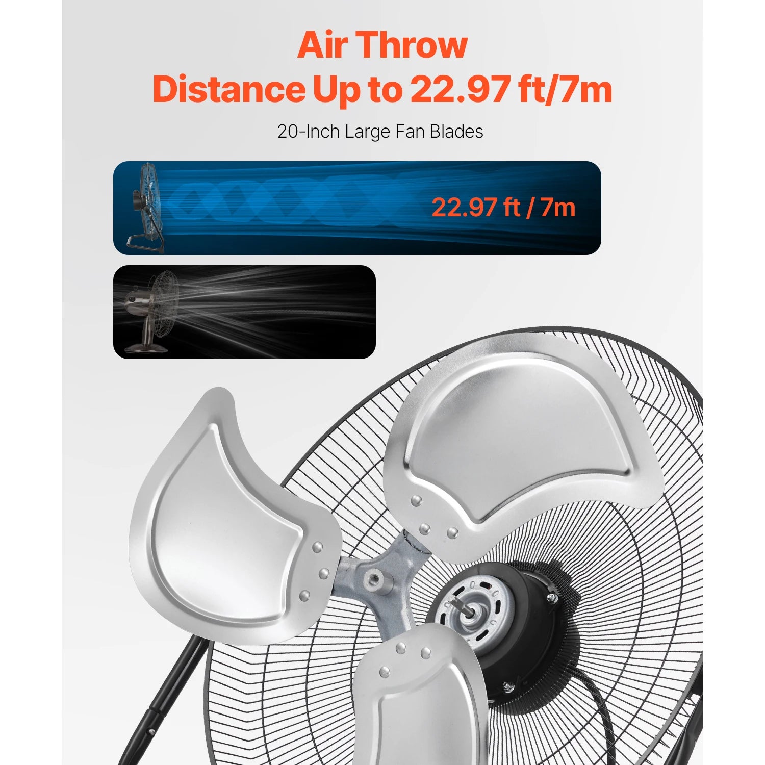 - High-velocity yet low noise: 3-speed dual ball-bearing motor delivering up to 4800 CFM with a 22.97 ft air throw and max 65 dB(A) for rapid, comfortable cooling.
