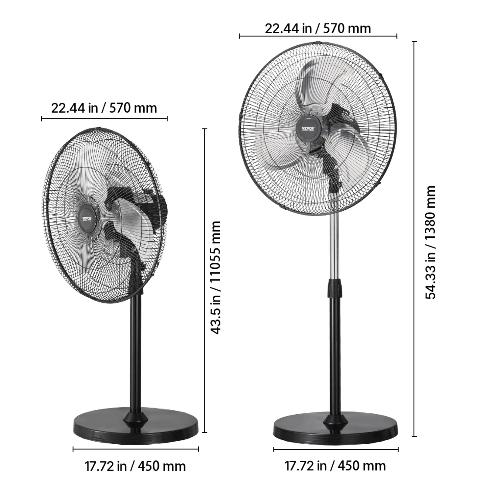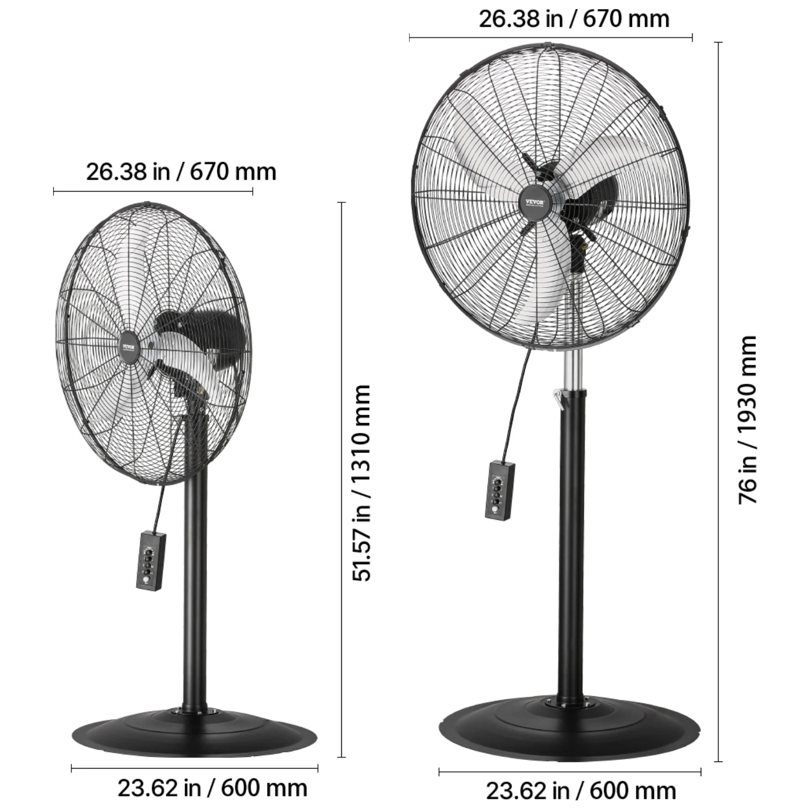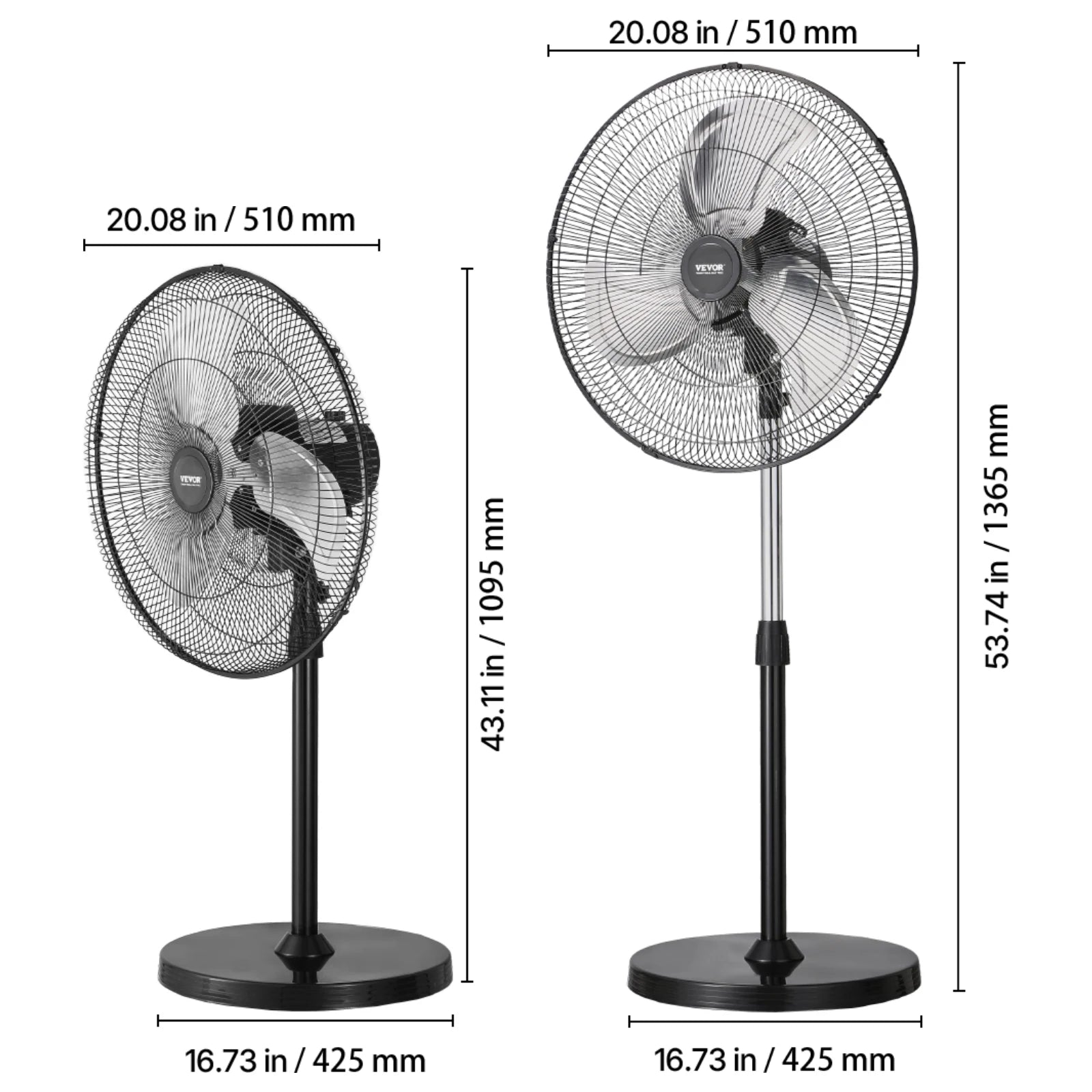 SucceBuy Pedestal Fan 3 Speed Oscillating Standing